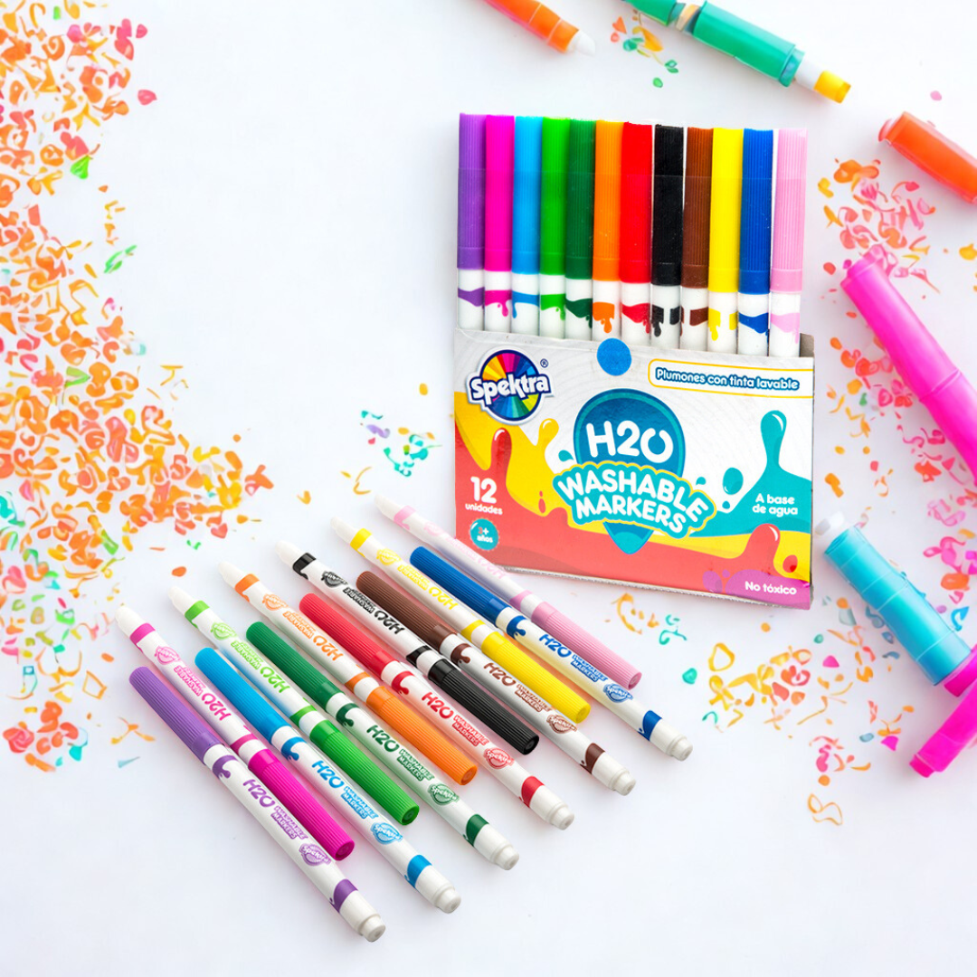 Plumones ideales para dibujar y decorar en diferentes tipos de papeles. Marcadores fácilmente lavables en superficies como tela, No tóxicos.