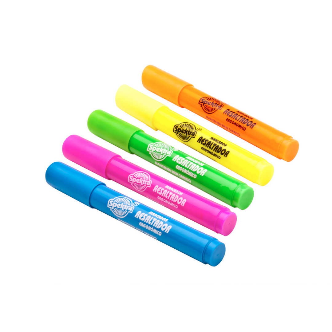 Su diseño ergonómico permite el uso confortable y eficaz. Son ideales para destacar el texto de diferentes tipos de escritos y documentos en papeles como: bond, periódico, fax, copia y esmaltado. La punta de tipo cincel permite trazar líneas de tres grosores diferentes. La tinta a base de agua, seca rápidamente y garantiza su intensidad por mucho tiempo. Disponible en cinco colores fluorescentes de alto brillo.