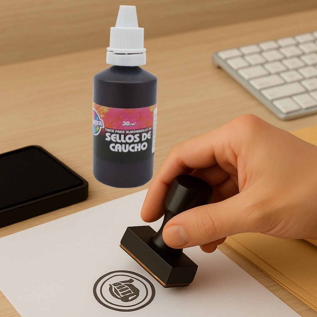 Especiales para sellos de caucho; su excepcional fórmula la hace resistente en climas cálidos evitando secarse prematuramente o descomponerse en climas húmedos. Posee un excelente control de penetración sobre el papel. Estas tintas son compatibles con almohadillas de espuma y almohadillas de fieltro. Sus colores poseen muy buena solidez a la luz. Tinta de secado rápido e impresión nítida